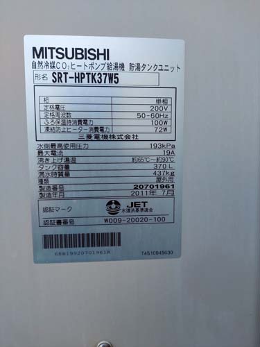 砺波市中央町 三菱電機自然冷媒CO2ヒートポンプ給湯機 貯湯タンクユニットSRT-HPTK37W5→パナソニック家庭用ヒートポンプ給湯機 ヒートポンプユニットHE-PLS45L エコキュート交換工事