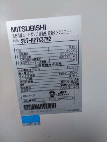 魚津市釈迦堂 三菱電機自然冷媒ヒートポンプ給湯機 貯湯タンクユニットSRT-HPTK37W2→コロナ自然冷媒CO2家庭用ヒートポンプ給湯機 ヒートポンプユニットCHP-DZ451K エコキュート交換工事